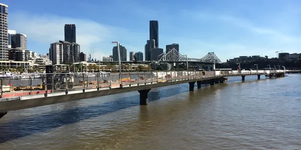 The Riverwalk is an 850 metre stainless steel boardwalk linking New Farm to Howard Smith Wharves. It has been sorely missed since it’s demise as it was a popular venue for a leisurely weekend stroll. We are pleased to report that the project is well underway and the walk will soon be reinstated.